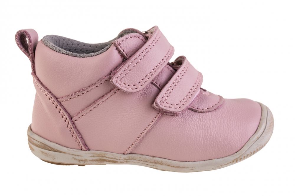 Dětská kožená obuv s anatomickou stélkou. Kůže nubuk, vyjímatelná stélka, flexibilní podešev. Vnitřní podšívka z prodyšného materiálu. Kožená stélka. Okop na přední části obuvi.