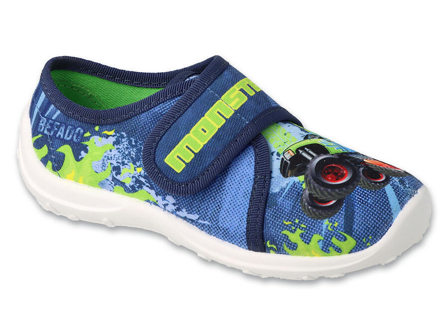 Bačkůrky od značky Befado s vícebarevným vzorem. Přezůvky odpovídají veškerým nárokům kladeným na zdravé a pohodlné obutí doma i ve školce.