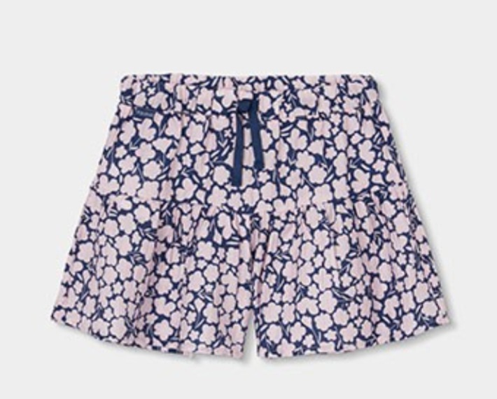 Dívčí kraťasy na sukni s květinovým vzorem v odstínech modré a růžové, ideální pro přidání svěžesti do každého outfitu.