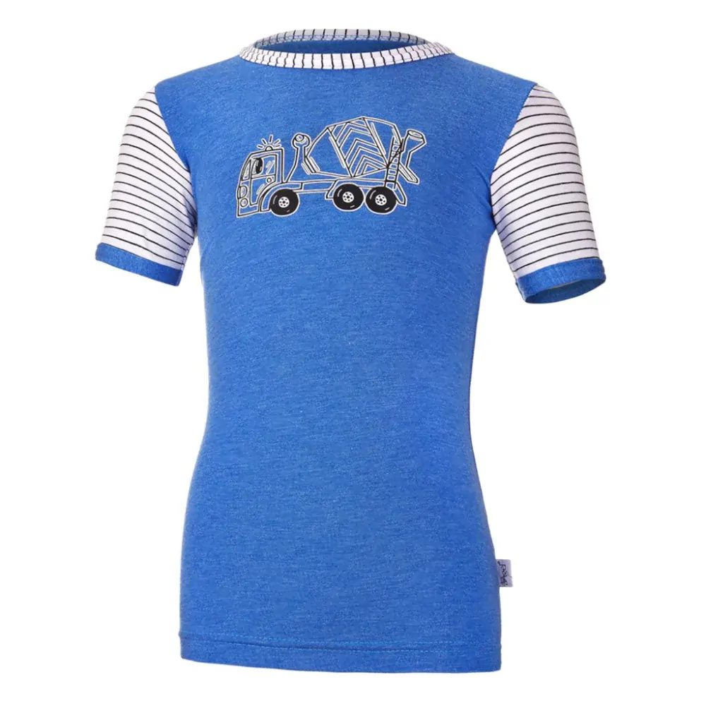 Little Angel Tričko tenké KR obrázek PRUH Outlast® - modrý melír/pruh bíločerný
