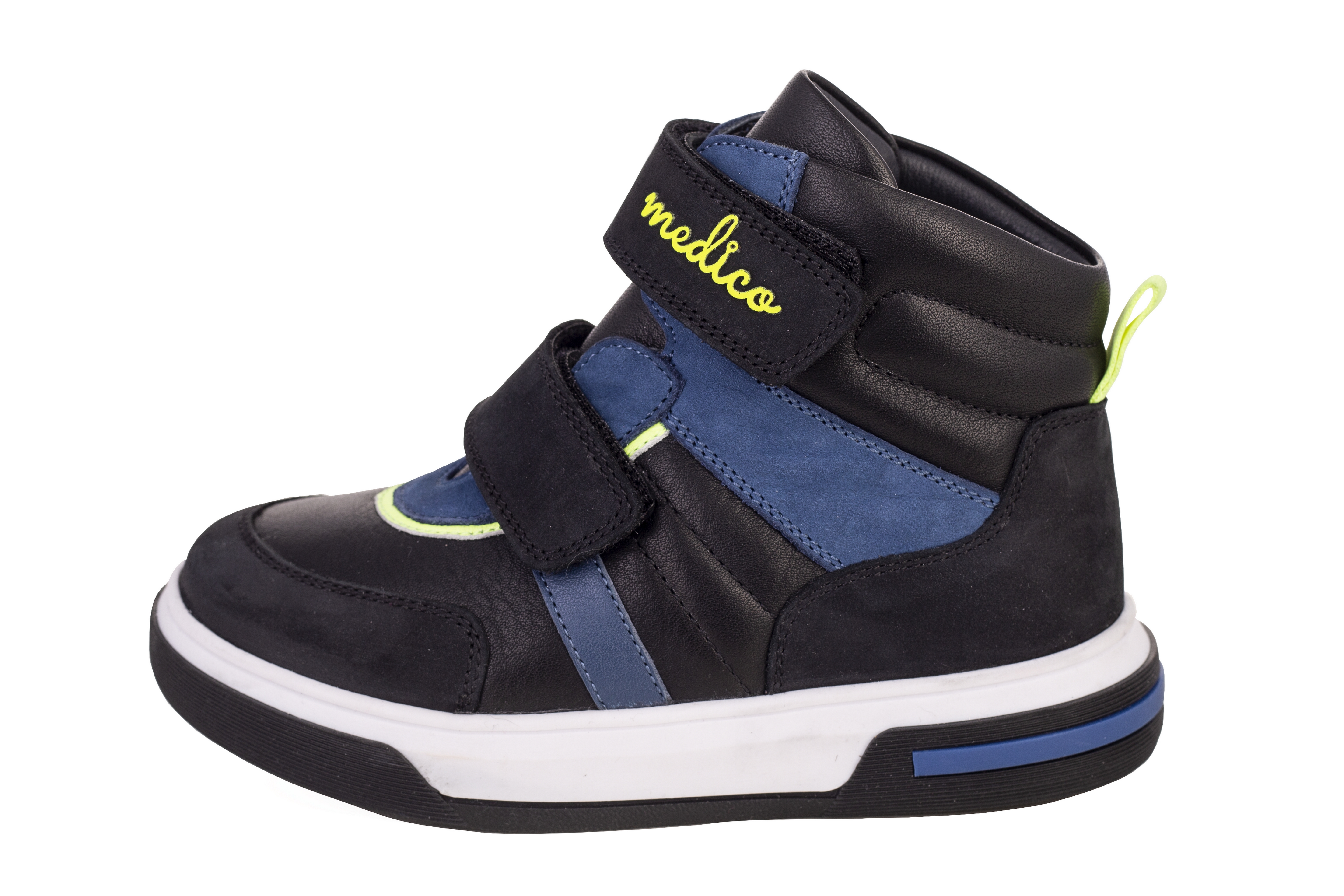 Dětská vyšší kožená obuv s anatomickou stélkou.