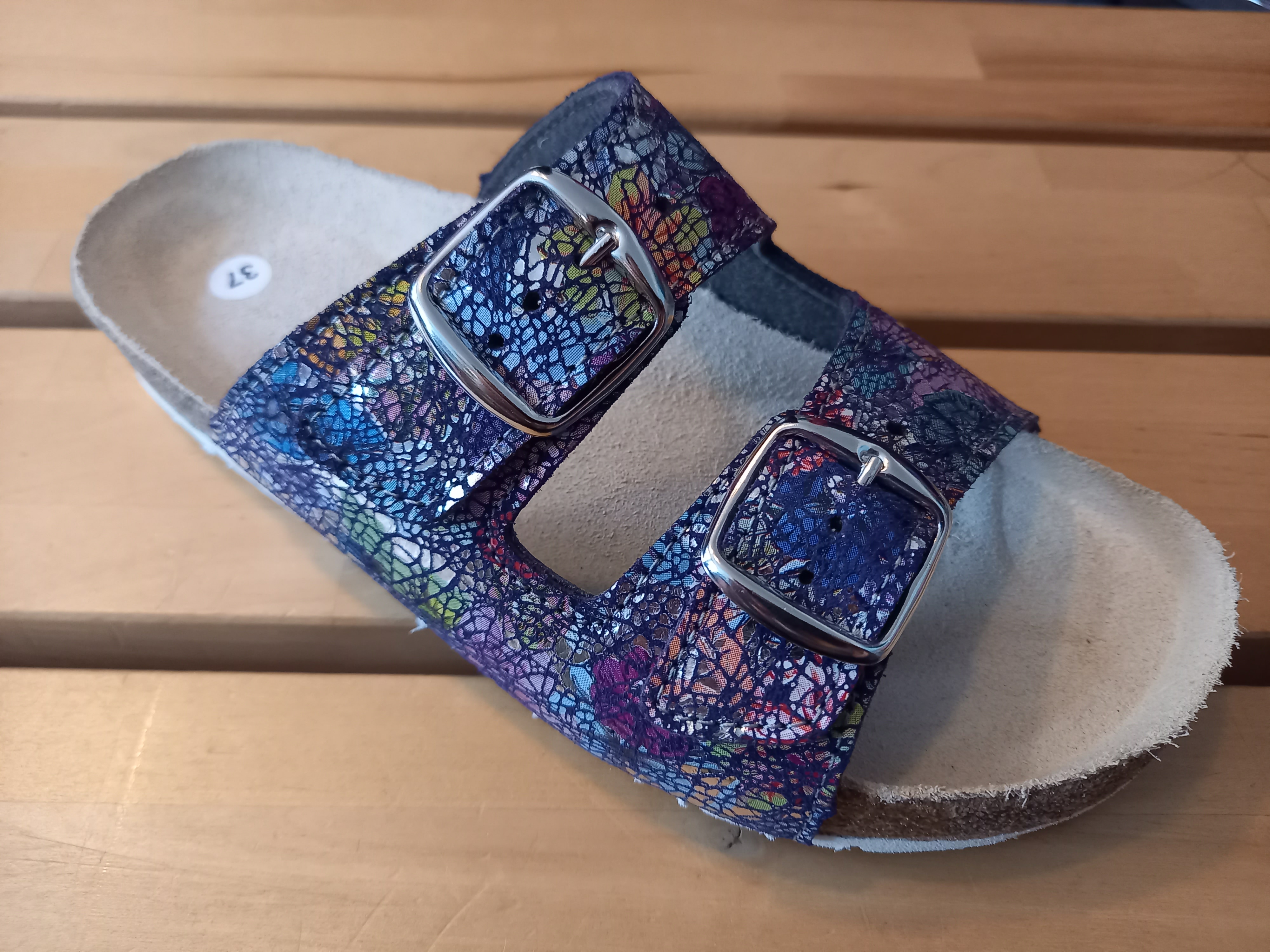 Domácí obuv - pantofle české firmy Boots4U. vzor T313  barva - barevná - potisk  kožená  nastavitelné pásky přes nárt  celý popis