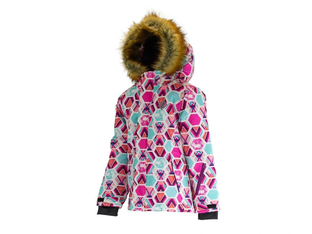 Lyžařská bunda v moderní barevné kombinaci. Bunda s praktickým lyžařským pásem, podšitá microfleecem. Kapuce odnímatelná na zip, je stažena do gumy pro správné držení tvaru. Rukávy jsou ukončené stahovacím páskem na suchý zip, lze regulovat dle potřeby, uvnitř elastický úplet s otvorem na palec. Reflexní potisk na rukávu, přední i zadní části.