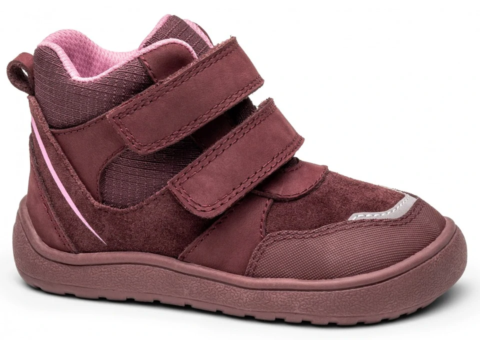 - Dívčí barefoot boty jsou vyrobeny v kombinaci kůže a kvalitního textilu, v příjemné vínové barvě.