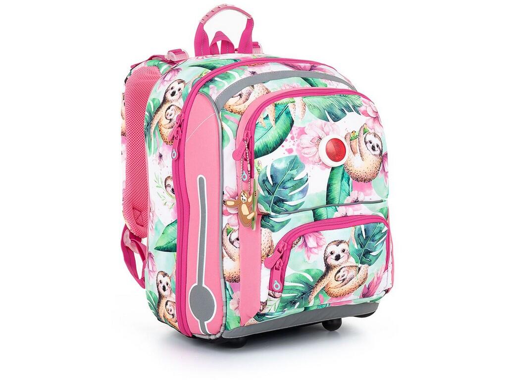 Růžová aktovka s roztomilými lenochody a blikačkou pro nejdrobnější holčičky. Vhodná do první až druhé třídy základních škol.