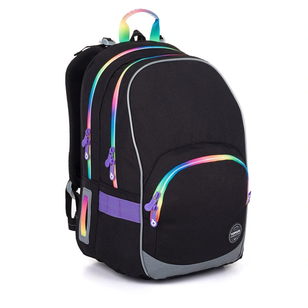 Dvoukomorový model KIMI jsme letos opravdu vymazlili – černou plochu jsme roztříštili barevnými zipy. A ano, na trhu takových batohů opravdu moc není. 🤭