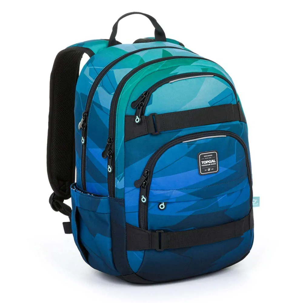 Dvoukomorový batoh pro studenty s výškou nad 145 cm. Vychytávkou jsou pásy na přední straně batohu, které díky suchému zipu skvěle udrží například malý skateboard nebo helmu na kolo.