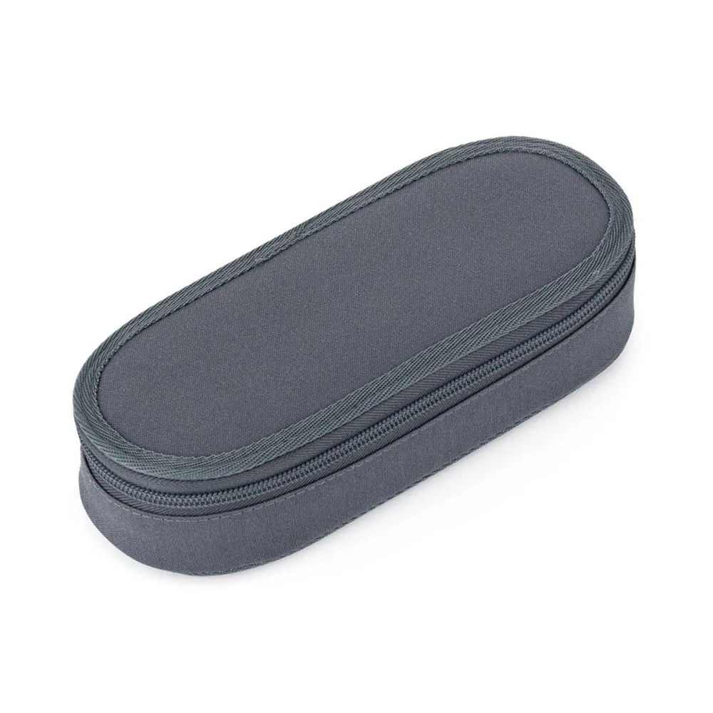 Oválný penál pro všechny starší školáky a studenty. Uvnitř pouzdra je síťová kapsička na zip a klopa. Na ní jsou umístěny gumičky pro uchycení celkem devíti tužek a propisek, které je potřeba mít přehledně uspořádané a po ruce. Volný prostor pod klopou slouží pro další psací potřeby – pastelky, fixy, ale i pravítko nebo kružítko.