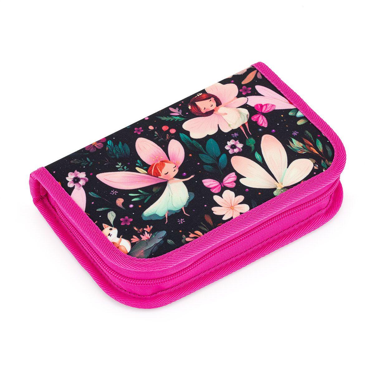 Jednopatrové školní pouzdro se dvěma klopnami je vybaveno 21 klasickými gumovými úchyty na pastelky a fixy, tři širší úchyty na pravítko, kružítko či nůžky a dva větší úchyty na gumu a ořezávátko.