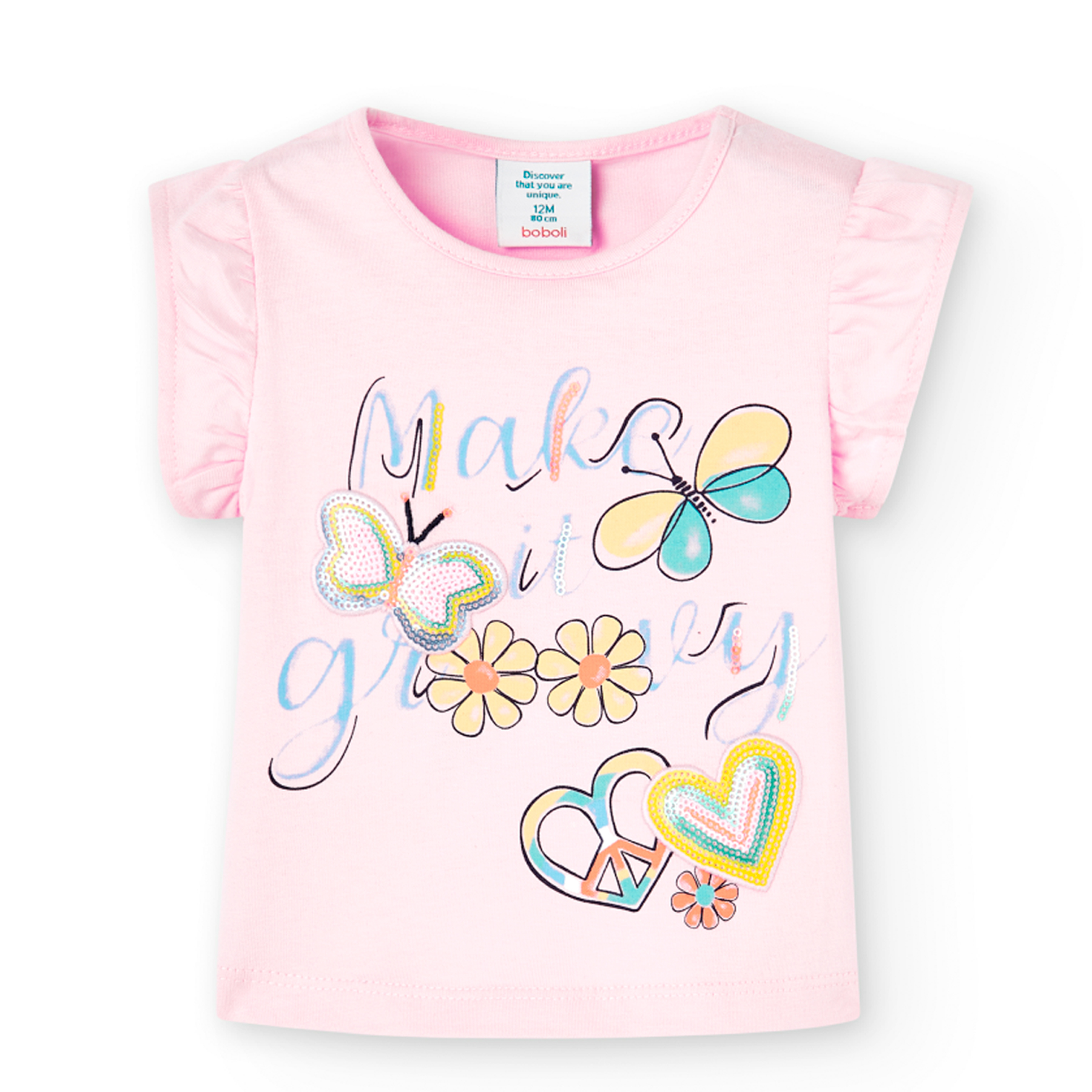Triko s krátkým rukávem od španělské značky Boboli. Příjemné triko ze 100% bavlny. s potiskem a pajetkami  barva světle růžová složení 100% bavlna celý popis