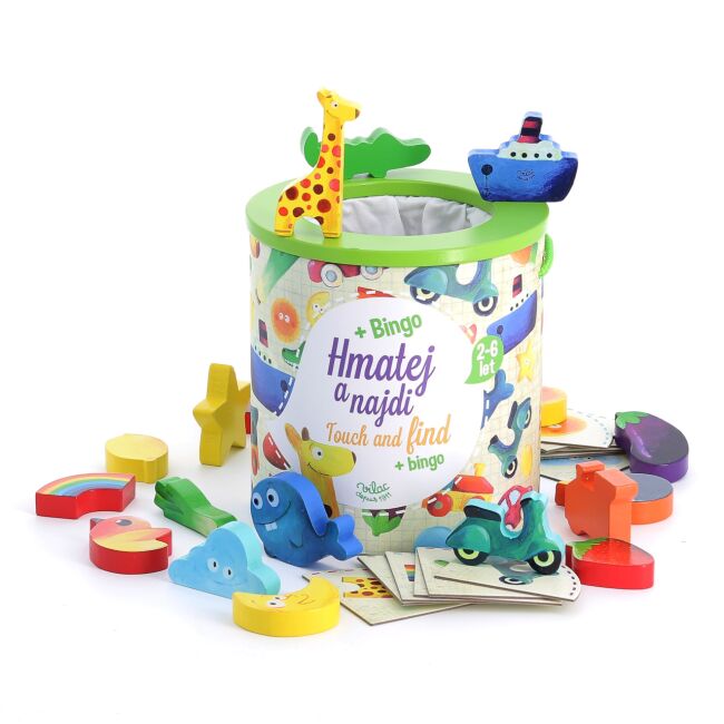 Nepřekonaný bestseller Vilac se originálním způsobem snaží rozvíjet často opomíjený smysl dětí, hmat. Hra je tvořená zejména dřevěnými figurkami ukrytými v kyblíku vybaveném uvnitř jemným látkovým sáčkem. Menší děti mají za úkol po vložení ruky do tuby jen na základě hmatání popsat svými slovy, jaký předmět drží v ruce. Rodiče mohou postup dětem předvést názorným příkladem. Starší děti mohou hrát hru ve formě lota, nebo binga, k těmto hrám jsou v sadě k dispozici obrázkové karty jednotlivých předmětů.