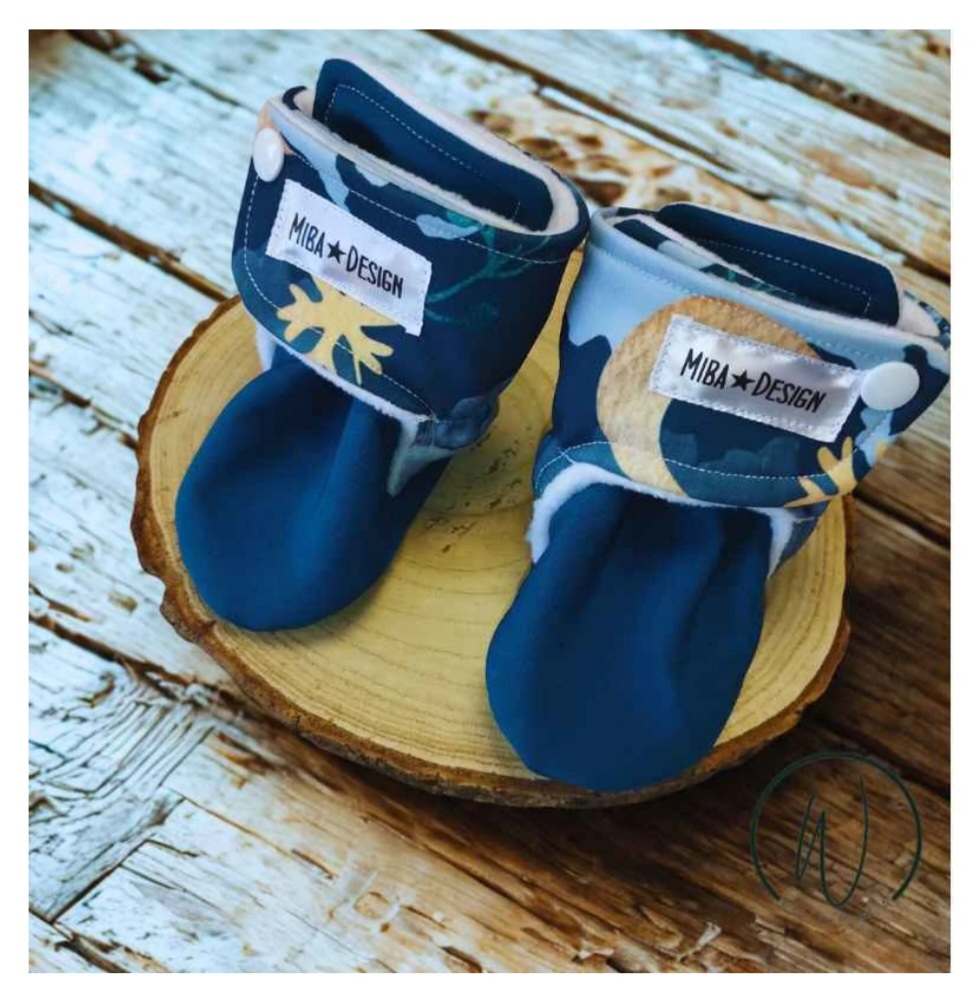 Softshellové capáčky pro miminka zateplené beránkem pro děti vhodné do kočárku výborně padnou na nohu a mají dostatečně širokou podrážku. v přední i zadní části je gumička  od velikosti 9-12m-12+ protiskluzová podrážka Zapínání na suchý zip +patent   velikosti 0-3m -10,5cm 3-6m-11,5cm 6-9m-12,5cm 9-... celý popis